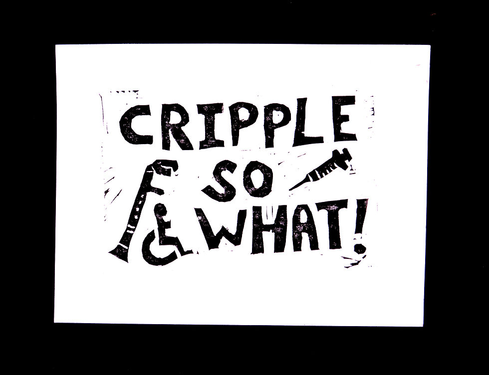 I am a queer, disabled artist whose practice spans performance, costume, prosthetics, sculpture, casting, metal work, printing and curation. My work is rooted in a deep exploration of the body—particularly my own, which defies normative expectations of function and form. I live with dynamic disabilities, meaning my impairments are not fixed but constantly shifting. This instability informs much of my practice, which challenges dominant narratives around ability, productivity, and control. My work interrogates the disabled body as a site of power, complexity, and contradiction. I discuss what it means to confront the able-bodied gaze. I question the notions of consent within the dynamics of power, control and objectification between the viewer and the disabled body as a subject. I delve into how the disabled body, mobility aids and degrading slurs ,which are used to oppress the disabled community, can be reclaimed and used to reshape ableist narratives..